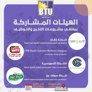 القائمة الخامسة للشركات والمصانع والهيئات المشاركة في ملتقى مشروعات التخرج والتوظيف القائمة الخامسة للشركات والمصانع والهيئات المشاركة في ملتقى مشروعات التخرج والتوظيف يوم الأثنين الموافق 23/ 6/ 2025 الساعة العاشرة صباحًا العنوان/ مقر جامعة بني سويف التكنولوجية – شرق النيل – الحي الأول – شارع النرجس Editor2025-06-18T12:51:53+02:00