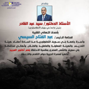 وأسرة جامعة بنى سويف التكنولوجية من السادة أعضاء هيئة التدريس والهيئة المعاونة والعاملين والطلاب