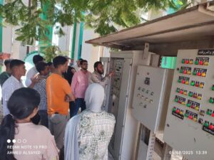 خلال التدريب، تعرّف الطلاب على تشغيل وصيانة المضخات الكهربائية المستخدمة في محطات الرفع والمعالجة، كما قاموا بفحص لوحات التحكم الخاصة بتشغيل هذه المضخات وتعلموا كيفية قراءة البيانات التشغيلية وضبطها. كذلك، تم تدريبهم على أنظمة التحكم في ضغط المياه وتدفقها باستخدام الحساسات ووحدات الإدخال والإخراج المرتبطة بلوحات التحكم.