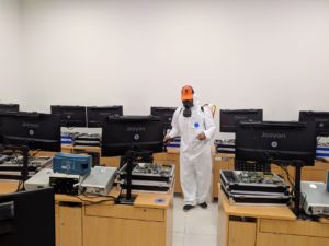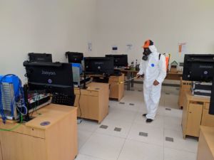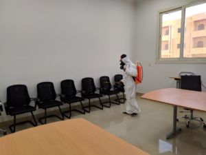 حيث وجه رئيس الجامعة بتطهير وتعقيم الجامعة بصقة مستمرة على مدار اليوم من خلال تعقيم المعامل والقاعات الدراسية قبل بدء المحاضرات وفور الانتهاء منها، بالإضافة لتعقيم مكاتب العاملين وتوفير المطهرات الطبية، كما شدد على منع الدخول للجامعة بدون ارتداء الكمامات.