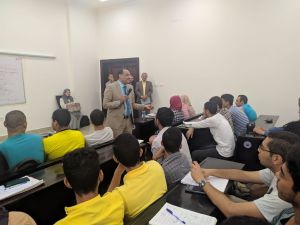 كما وجه الطلاب إلى ضرورة الاستفادة من الزيارات التي تنظمها الجامعة للمصانع، وفي نهاية اللقاء توجه بالشكر لجميع الطلاب على التزامهم وحضورهم المستمر.