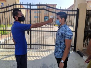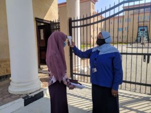 هذا وقد تم التأكيد على ضرورة تنفيذ جميع الإجراءات الوقائية من تعقيم وتهوية للقاعات المستخدمة قبل وبعد اختبار القدرات، و كذلك التوجيه بضرورة الالتزام بارتداء الكمامة و الحفاظ على التباعد بين الطلاب، وقد قامت الوحدة العلاجية بالكلية بالكشف على درجة حرارة الطلاب قبل الدخول و توفير العبوات اللازمة لتعقيم القاعات، وتأتي هذة الإجراءات من أجل الاطمئنان على سلامة الطلاب المتقدّمين للاختبارات بالجامعة.