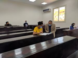 وشدد رئيس الجامعة على تطبيق الإجراءات الاحترازية من خلال الالتزام بالتباعد الاجتماعى وتقليل الكثافة العددية داخل اللجان ومنع التجمعات بين الطلاب أثناء تأدية الاختبارات بالإضافة إلى تعقيم وتطهير القاعات بما يضمن منع انتشار العدوى.