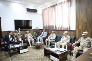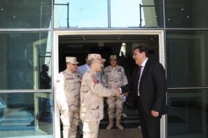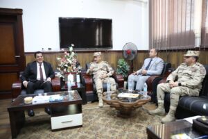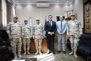 وخلال اللقاء، رحب رئيس الجامعة بالمستشار العسكري، مؤكدًا حرص الجامعة على دعم برامج التربية العسكرية والتربية الوطنية، لما لها من دور مهم في تنمية الوعي الوطني، وتعزيز روح الولاء والانتماء، وبناء شخصية طلابية واعية وقادرة على تحمل المسؤولية، معربًا عن تطلعه إلى استمرار التعاون والتنسيق المشترك بما يخدم مصلحة الطلاب، ويسهم في تحقيق أهداف الدولة في بناء الإنسان المصري.