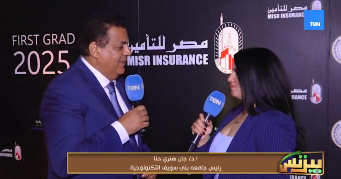 مقابلة مع الأستاذ الدكتور جان هنري حنا، رئيس جامعة بني سويف التكنولوجية، على قناة Ten، وذلك خلال فعاليات حفل تخرج الدفعة الأولى من مدرسة مصر للتأمين الدولية للتكنولوجيا التطبيقية، حيث تناول في حديثه أوجه التعاون مع شركة مصر للتأمين وأهميته في فتح آفاق واسعة أمام الشباب للمنافسة بقوة في سوق العمل المحلي والدولي.